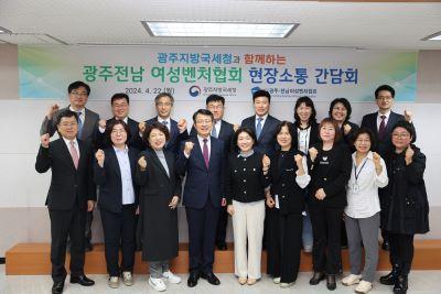 광주지방국세청은 22일 광주테크노파크 회의실에서 광주전남 여성벤처협회 김현화 회장을 비롯한 임원진 10여명과 현장소통 간담회를 가졌다.