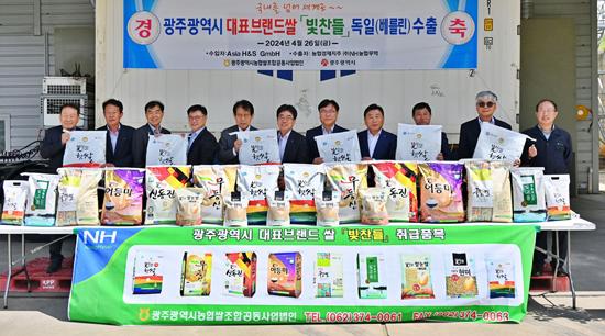 농협중앙회 광주지역본부는 지난 26일 광주통합RPC에서 \'빛찬들 궁답쌀\' 18t을 처음으로 독일 베를린으로 실어 보내는 수출 선적식을 했다고 28일 밝혔다