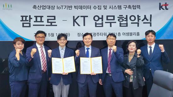 KT 전남전북광역본부는 지난 14일 IoT 기술을 이용한 가축 건강관리 솔루션 전문 기업인 팜프로와 업무협약을 체결하고 ‘축산업 대상 IoT 기반 빅데이터 수집 및 시스템 구축’ 시장 확대를 위해 상호 협력한다고 15일 밝혔다.