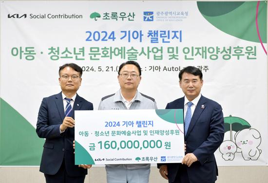 이날 후원금 전달 행사는 기아 오토랜드광주에서 진행됐으며, 기아 오토랜드광주 문재웅 공장장이 광주광역시교육청 이정선 교육감, 초록우산 광주가정위탁센터 김재춘 관장에게 후원금 1억6000만원을 전달했다.