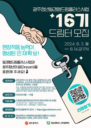 광주시는 2024년도 하반기 ‘광주 청년일경험드림플러스’ 사업을 통해 청년들에게 직무현장 일경험을 제공할 ‘드림터(사업장)’를 모집한다.