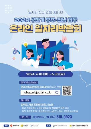 전남도가 오는 10일부터 30일까지 \'일자리 잡고! 희망 JOB GO!\'라는 주제로 2024 상반기 전남·광주 합동 온라인 일자리박람회를 개최한다고 6일 밝혔다.