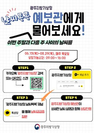 카카오톡 채널에서 광주지방기상청을 검색해 친구추가를 한 뒤 채팅창에서 궁금한 사항을 질문하면 예보관이 직접 설명해 주는 방식이다.