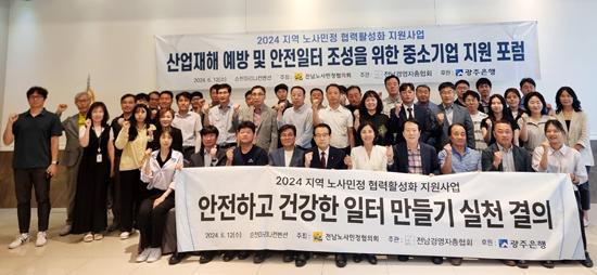 전남도노사민정협의회는 12일 순천 마리나컨벤션에서 전남경영자총회 주관 ‘산업재해 예방 및 안전일터 조성을 위한 중소기업 지원포럼’을 개최했다고 밝혔다.