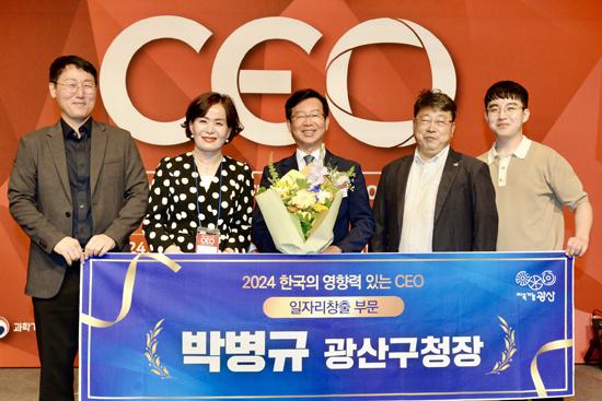 박병규 광산구청장이 19일 시민 주도의 새로운 지역 일자리 혁신을 선도한 노력과 성과로 ‘2024 한국의 영향력 있는 CEO(최고 경영자)’ 일자리 부문에 선정됐다.