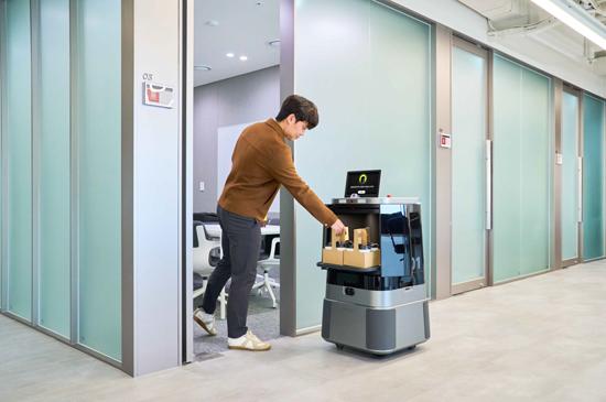 달이 딜리버리는 건물 엘리베이터와 출입문 등 관제 시스템과 통신하며 스스로 건물 각 층을 자유롭게 움직인다.