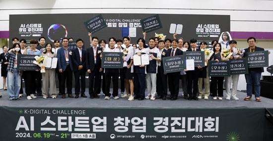 올해 ‘AI 창업 경진대회’는 예비 창업자 64개 팀이 참가, 예선·본선·결선을 거쳐 최종 10개 팀이 경쟁을 벌였다. 최종 선정 팀에는 과학기술정보통신부장관상, 광주광역시장상, 정보통신산업진흥원장상, 인공지능산업융합사업단장상 등이 수여됐다.