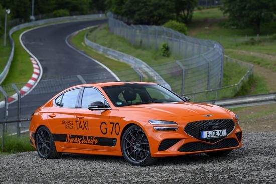 제네시스는 G70 3.3T를 서킷 주행에 적합하도록 고성능으로 개조해 트랙 택시를 제작했다. 최고출력은 370ps, 최대토크 510Nm, 최고속도는 시속 270㎞다.