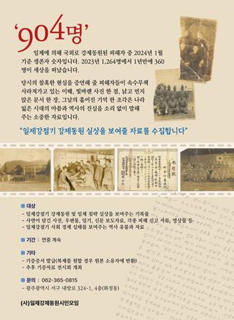 (사)일제강제동원시민모임은 일반 시민들을 대상으로 일제강제노역 실상을 담고 있는 자료 수집에 나선다고 24일 밝혔다.