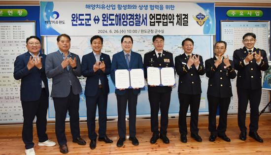 완도해양경찰서는 지난 26일 완도군과 해양치유산업 활성화 및 상생 협력을 위한 업무협약을 체결했다고 밝혔다.