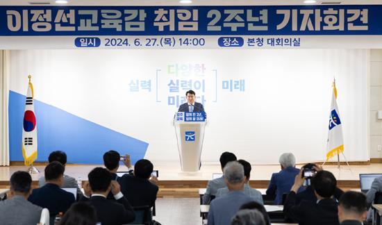 이 교육감은 이날 오후 청사 대회의실에서 취임 2주년 기자회견을 열어 \"지난 2년은 광주시민에게 했던 약속을 지키기 위해 밤낮 없이 발로 뛰었던 시간이었다\"며 \"다양한 교육구성원과 시민을 만나 광주교육에 대한 이야기를 들었고 배움의 현장을 구석구석 찾아가 살펴봤다. 더 많이 고민하고, 더 깊이 성찰하며 오직 광주교육의 변화를 위해 땀 흘린 시간이었다\"고 회고했다.