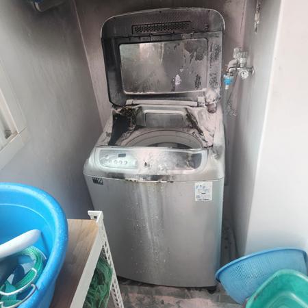 이날 화재는 오후 1시 16분경 아파트 4층 다용도실 세탁기에서 발생한 불꽃을 세입자가 발견해 물로 초기소화를 시도했으나 꺼지지 않았다.