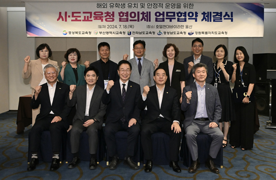 전남교육청은 18일 울산에서 경북교육청·경남교육청·강원교육청·부산교육청 등 4개 교육청과 지속적인 해외 유학생 유치 및 공동 수행을 위한 업무협약을 체결했다고 밝혔다.
