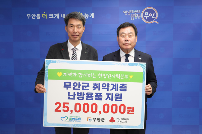 무안군은 지난 4일 한국수력원자력 한빛원자력본부로부터 지역 내 동절기 취약계층의 따뜻한 겨울나기를 위한 2,500만원 상당의 난방용품을 기탁받았다고 밝혔다.