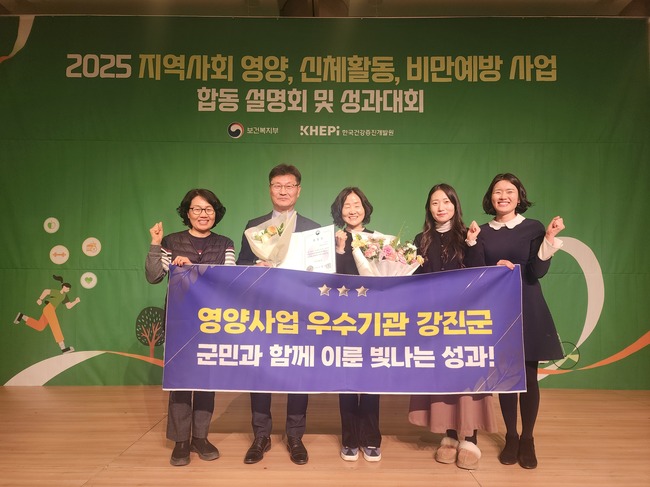 강진군이 2025년 영양의 날 기념 유공 포상에서 ‘국민영양관리시행계획 실적 부문’ 우수기관으로 선정돼 보건복지부 장관 표창을 받았다고 8일 밝혔다.