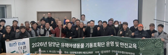 담양군이 지난 16일 담양에코센터 에코교육관에서 2026년 유해야생동물 기동포획단 운영을 위한 안전교육을 실시했다고 밝혔다.