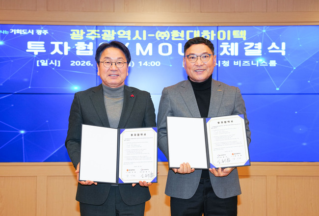 김용구 현대하이텍 대표이사는 “광주시의 적극적인 지원과 협력 덕분에 이번 투자협약을 체결하게 됐다”며 “신규 공장 신설과 설비 투자를 통해 미래차 부품 경쟁력을 높이고, 우수한 지역 인재 채용과 상생 경영으로 광주지역 경제 발전에 기여하겠다”고 화답했다.