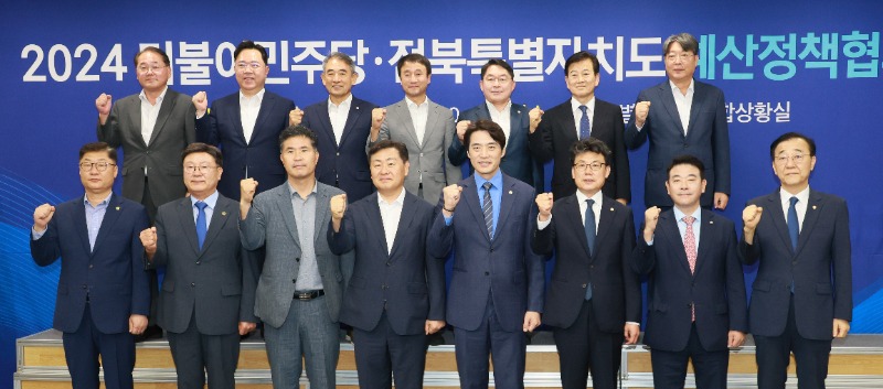 전북특별자치도는 11일 도청 종합상황실에서 더불어민주당 지도부와 예산정책협의회를 개최하고 `24년 국가예산 관련 국회단계 대응 핵심사업 및 도정 주요 현안을 논의했다.