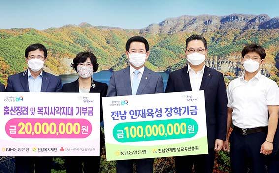 NH농협은행 전남영업본부는 전남인재육성을 위한 기금으로 1억원을, 출산장려 및 복지사각지대를 위한 기부금으로 2000만원을 기탁했다.