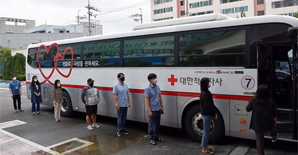 ‘사랑의 헌혈 운동’은 코로나19 확산 및 장기화에 따른 혈액 수급 문제점을 극복하기 위해 직원들의 자발적인 참여로 진행됐다. 전혈의 경우 1인당 15분 정도 시간이 소요됐고, 헌혈 참여 직원들은 헌혈 하루 전 몸 상태 유지를 위해 충분한 숙면을 취한 후 나눔 정신을 몸소 실천했다.