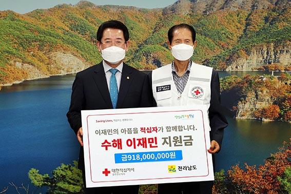 이날 기탁식에는 김영록 전라남도지사와 박흥석 대한적십자사 광주전남지사 회장, 이재승 사무처장 등이 참석했다.