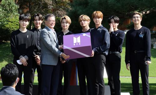 문 대통령은 지난달 "BTS가 한국 가수 최초로 빌보드 '핫 100' 1위를 차지하며 K팝의 새 역사를 썼다"며 축하 메시지를 내기도 했다. 당시 BTS는 문 대통령의 트위터 계정에 직접 답장을 보내는 방식으로 감사의 뜻을 전하면서 화제가 됐다.