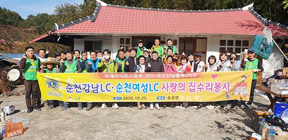 이번 집수리 봉사활동은 지난해에 이어 올해도 순천강남라이온스클럽(회장 박광현), 순천여성라이온스클럽(회장 김정순)이 참여했고, 한국해비타트 전남동부지회(이사장 김용호)도 동참하여 지난 24일부터 25일까지 어려운 이웃 5세대에 도배·장판, 지붕수선 등 주거환경 개선과 함께 독거노인의 안부도 살폈다.