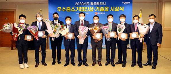 광주시는 2020년 우수중소기업인 5명과 기술장 3명을 선정하고 20일 시청 비즈니스룸에서 상패를 수여했다.