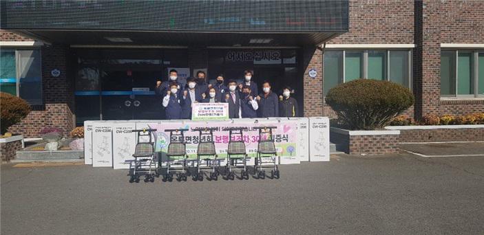 광양시는 옥룡면 청년회는 지역 내 거동이 불편한 저소득 어르신들을 위해 보행 보조차 30대를 기증했다.