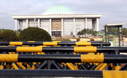 윤석열 검찰총장 직무배제와 고위공직자범죄수사처 법안 처리 등으로 여야가 맞붙으며 560조 원 규모로 짜인 내년도 예산안 처리에 차질이 빚어지고 있는 29일 오전 서울 여의도 국회 정문에서 본청 건물이 보이고 있다. 국회법에 정해진 예산안 처리 법정 시한은 12월2일 이다.