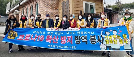 국제라이온스협회 355-B3(전남동부)지구 새순천여성라이온스클럽은 코로나19 예방을 위해 순천시 왕조1동 경로당 4곳에 방역 봉사 활동을 펼쳤다.