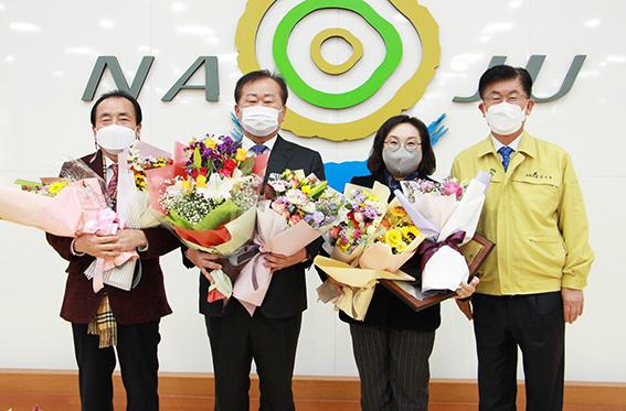 나주시는 지난 1일 시청 대회의실에서 열린 12월 정례조회를 통해 숨은 의인으로 선정된 시민 김성주, 오종순, 정은주 씨에게 표창장을 수여했다고 2일 밝혔다.