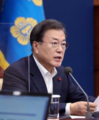 문 대통령은 "미래를 위한 투자도 멈추지 말아야 한다"며 "재정과 공공투자의 시간표를 최대한 앞당겨 집행해야 하겠다. 특히 한국판 뉴딜, 2050 탄소중립 등 대한민국을 대전환하면서 미래성장 동력과 미래의 일자리를 마련하는 미래 투자에 정책자금을 공급하고 금융지원을 확대하는 데 속도를 내주기 바란다"고 지시했다.