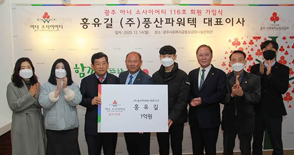 광주사회복지공동모금회는 풍산파워텍 홍유길 대표이사가 광주 116번째 아너 소사이어티 회원으로 가입했다고 15일 밝혔다.