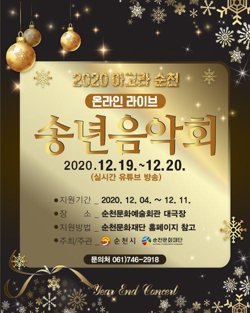 순천문화재단은 오는 19일 오후 12시부터 순천문화예술회관 대극장에서 순천시민들을 위한 온라인 라이브 ‘송년음악회’를 개최한다.