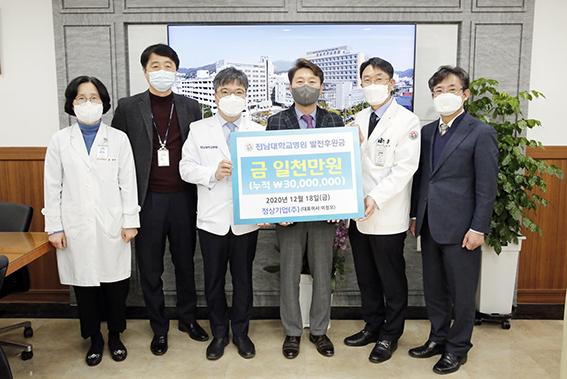 광주지역 건설업체인 정상기업(주)의 이정오 대표가 18일 전남대병원발전후원금으로 1천만원을 기탁했다.