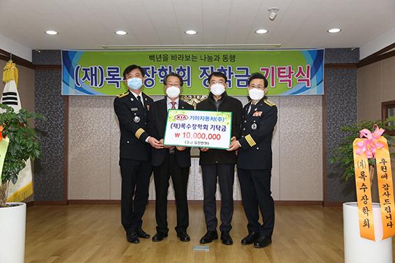 광주시 소방안전본부는 지난 18일 기아자동차 광주공장이 재단법인 록수장학회에 소방관 자녀를 위한 장학기금 1000만원을 기탁했다고 밝혔다.