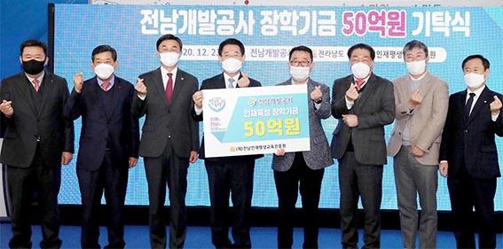 김영록 전남지사는 “자본금 50억원에 불과하던 전남개발공사가 해상풍력이나 태양광 같은 지역 미래산업까지 영역을 확장하고, 50억원의 장학금까지 기탁해 마음이 든든하다”며 “지역 미래인재는 지역민의 정성과 성원으로 키워가는 것이다”고 말했다.