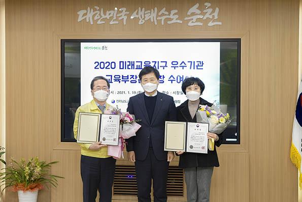 순천시가 교육부에서 주관하는 ‘미래교육지구’ 공모사업 우수지구로 선정되어 교육부장관 기관표창을 받았다.