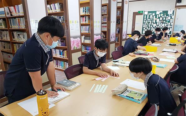 독서토론 수업 활동으로 ▲한 학기 한권 읽기 수업 실시 ▲주제 선택 '삶에서 즐기는 시 여행' 운영 ▲아침 사제동행 독서 시간 운영 ▲도서관 활용 수업 등 교육과정과 연계해 독서토론 수업 활동을 실시했으며, 학생들이 교육과정 안에서 자연스럽게 독서토론 능력을 증진시키고자 노력했다.