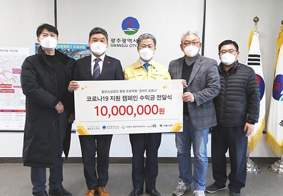 광주신세계는 2월 한 달간 1층 이벤트홀에서 진행하는 '청년소상공인 응원 프로젝트 굿바이 코로나' 캠페인 수익금 1000만원을 미리 앞당겨 4일 전달했다고 밝혔다.