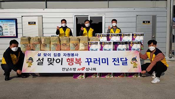 전남소방(본부장 마재윤) 직장동호회 “119섬나회”에서는 지난 2월 6일 취약계층 등 25가구에 대해 설 맞이 꾸러미 선물세트 전달 봉사활동을 실시했다.