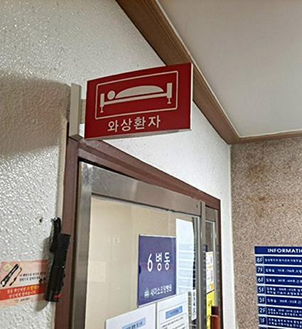 화재현장에서 요구조자 위치를 쉽게 식별하고 어두운 상황에서도 확인이 가능한 축광식 돌출형으로 제작됐으며, 병실 입구 벽면과 창문에 설치됐다.특히, 와상환자가 입실한 병실 입구에 설치하여 농연이나 어두운 상태에서도 누구나 쉽게 와상환자가 있음을 알릴 수 있도록 반사도료 재질로 제작했다.