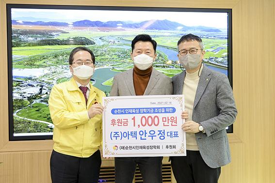 ㈜아텍은 16일 (재)순천시인재육성장학회에 1000만원의 후원금을 전달했다.