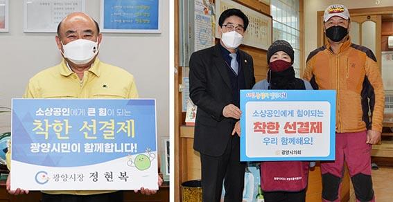 정현복 광양시장과 진수화 의장은 소상공인 지원을 위한 ‘착한 선결제 캠페인’에 지난달 25일 동참하면서 시민들의 참여를 유도했다.