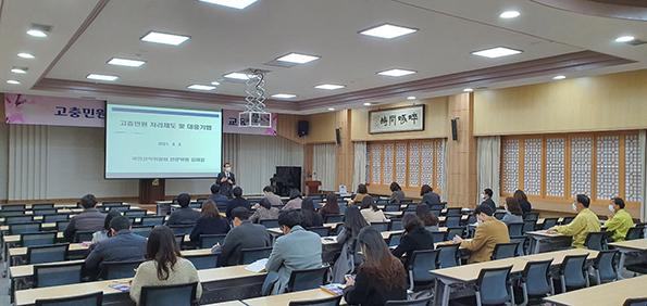 ‘고충민원 처리 역량 강화 교육’은 광주시교육청 대회의실에서 대면 방식으로 진행됐고, 시교육청 16개 부서 각 사무실에서는 실시간 영상을 통한 비대면 방식으로 실시됐다. 국민권익위원회 김재윤 전문위원이 ‘고충민원 처리제도 및 대응기법’을 주제로 강의했다.
