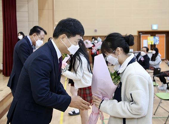 장석웅 전남교육감은 이날 입학식 및 개학식에 참석, 학생들에 ‘희망’의 꽃을 전달하며 입학과 개학을 축하하고 “꿈의 크기가 삶의 크기를 결정해준다”면서 “여러분이 미래예술 세계를 이끌 창의융합인재가 되겠다는 큰 꿈을 세우면, 그 꿈이 여러분을 이끌어줄 것이다”고 격려했다.
