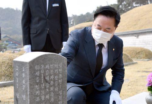참배를 마친 김 의원은 참언론을 만들기 위해 헌신한 고(故) 김태홍 전 국회의원 묘지와 전남대학교 총학생회장으로 5·18 당시 민주화 운동에 앞장선 박관현 열사의 묘소를 찾아 묵념했다.