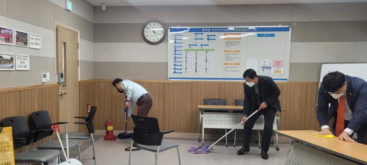 제12기 중마동 주민자치위원 30여 명은 중마동 주민자치센터(지상 4층, 지하 1층) 전체를 대상으로 일제 청소, 집기 정리 등 환경 정비를 실시했다.