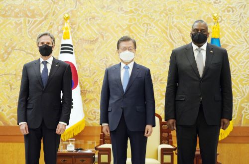 문 대통령은 이날 오후 3시부터 50분간 청와대에서 진행된 토니 블링컨 미국 국무장관과 로이드 오스틴 국방장관 합동 접견 자리에서 이같이 언급했다.